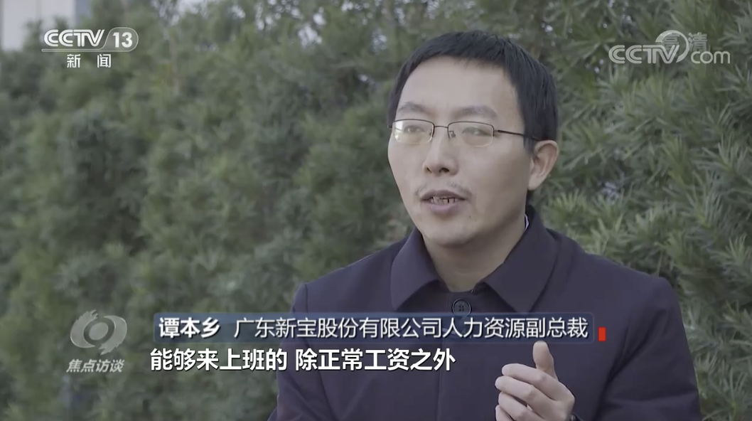 广东新宝股份有限公司人力资源副总裁 谭本乡:凡是留在这里过年,每人都有最高1000元奖励。能够来上班的,除正常工资以外,整个加在一起可以到5000多元。