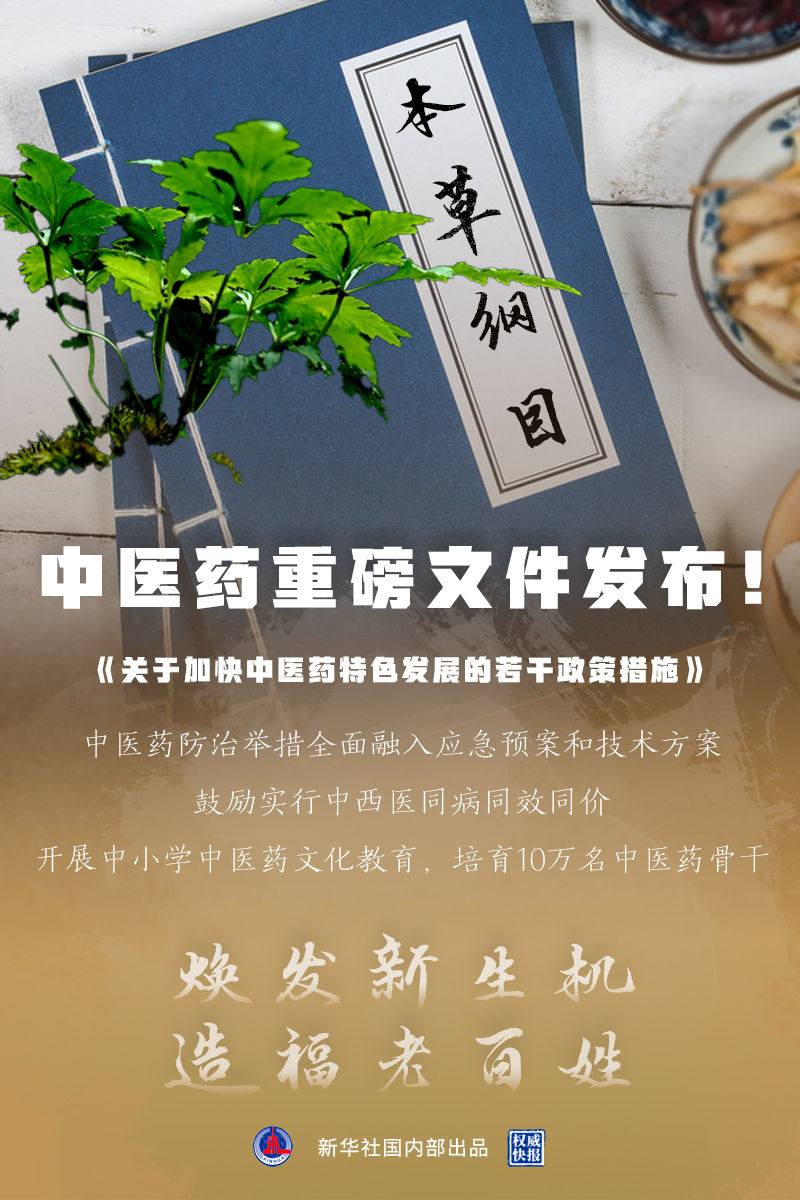 国办日前印发《关于加快中医药特色发展的若干政策措施》