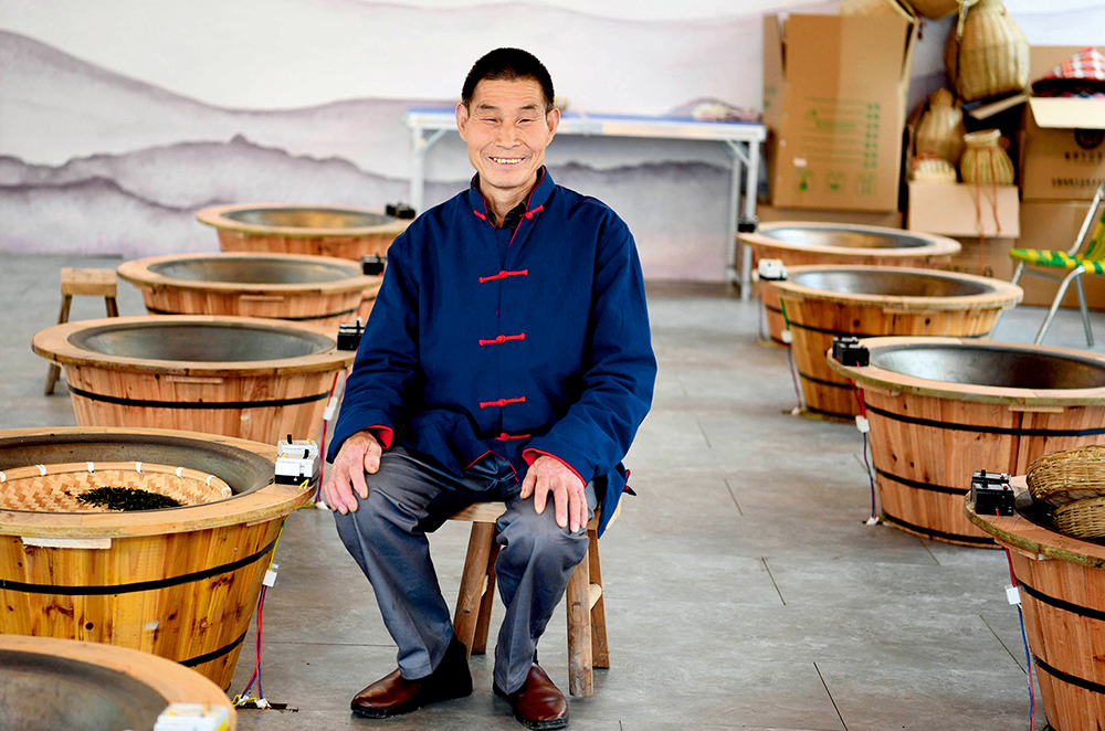陈泽申在村里的茶产业扶贫车间内(2019年5月18日摄) 刘军喜摄/本刊