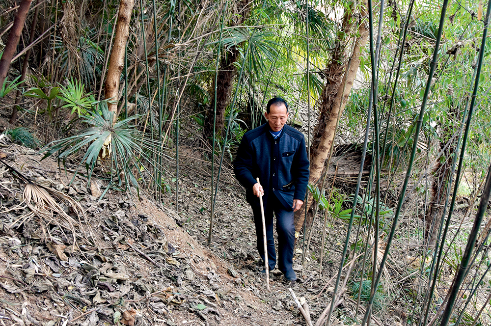冬日的冷风飕飕地刮着,王中元在清晨的严寒中熟练地拨开茂密的树丛,把拐杖牢牢杵在地上,即使鸟儿已南飞越冬,他还是习惯性地每天在林子里绕一圈。这样的山路,他已经走了18年。