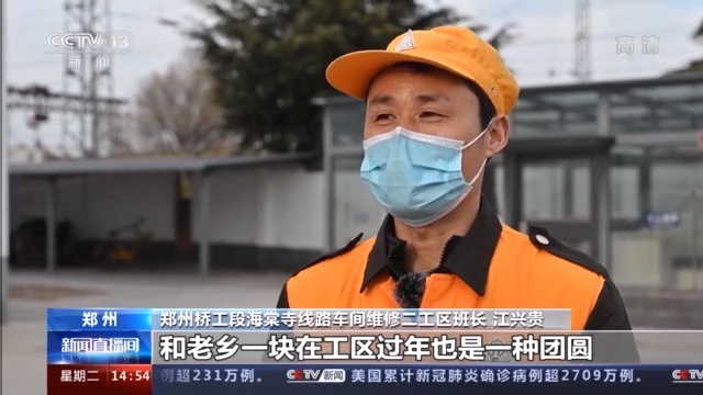 郑州桥工段海棠寺线路车间维修二工区班长 江兴贵:在哪过年都是过年,和老乡一块在工区过年也是一种团圆。今年我们最大的愿望就是在春运期间守护好铁路安全,确保线路畅通。 (总台央视记者 李伟代 景飞飞 李伊 王伟)