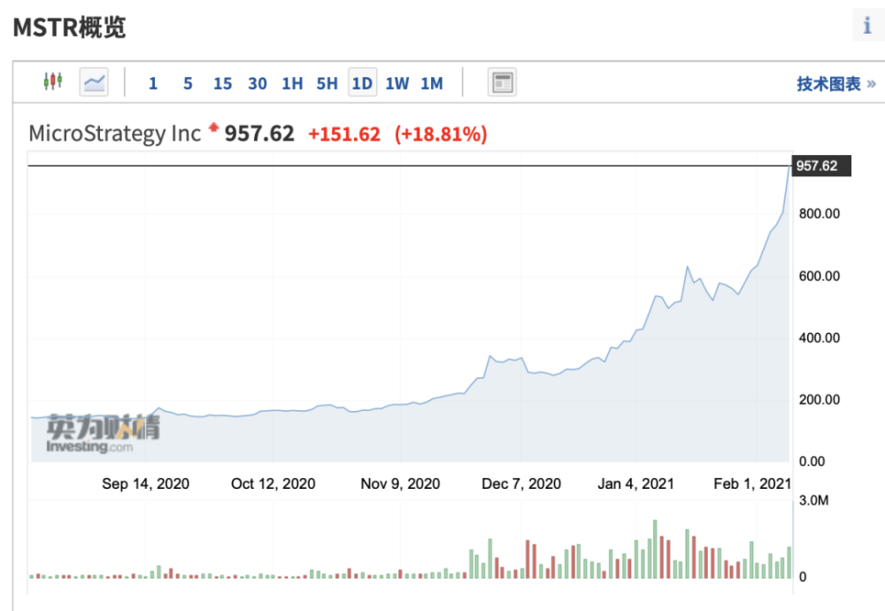 Bitcoin Treasuries数据显示,美国软件巨头MicroStrategy自2020年8月开始大笔购买比特币以来,目前拥有38250个比特币(当前价值约为16.8亿美元),MicroStrategy成为大量持有比特币的机构之一,公司的股票价格也出现大幅上涨。