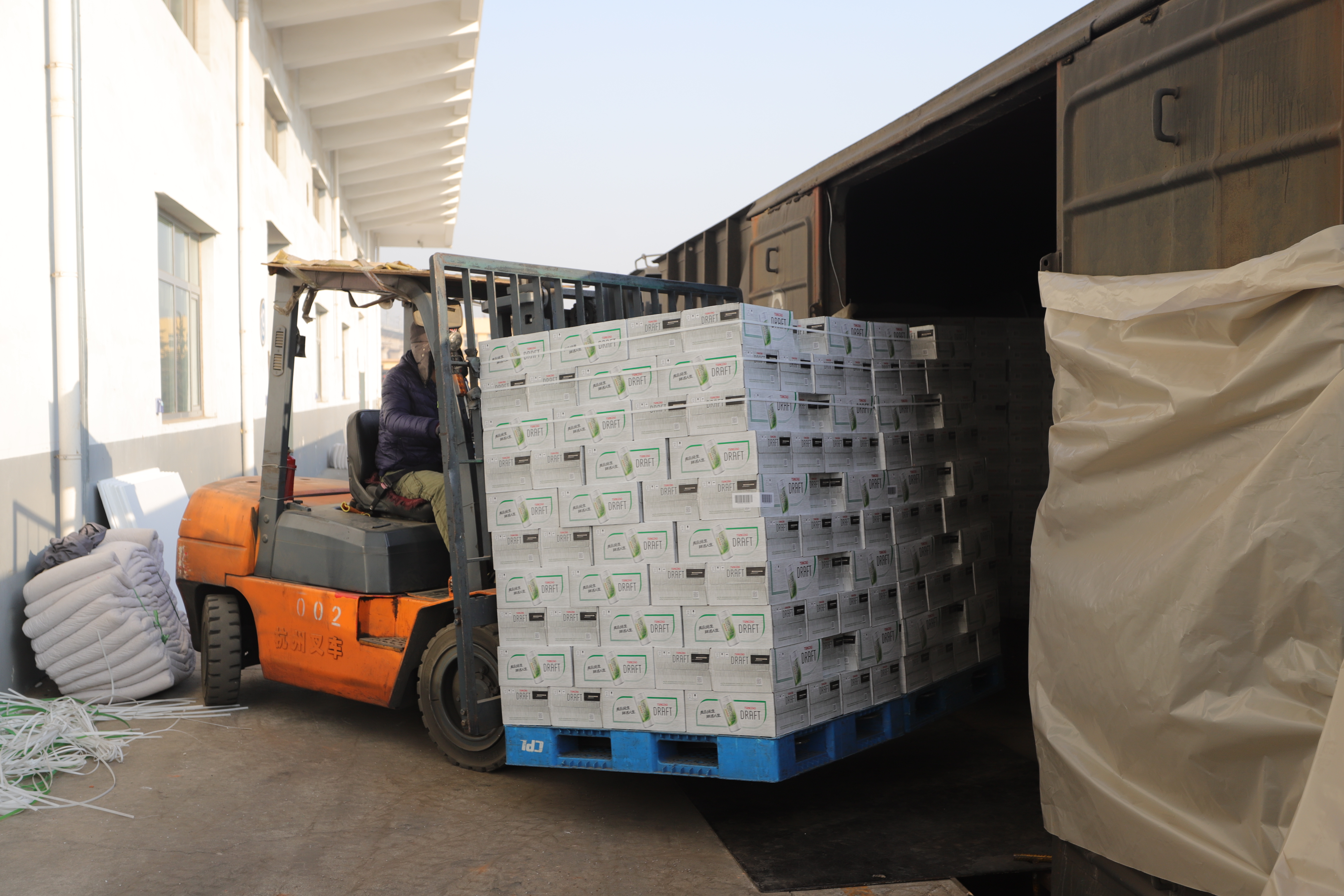 工作人员使用叉车进行啤酒装车,一旁的保温材料已经准备就绪。(娄山站提供)