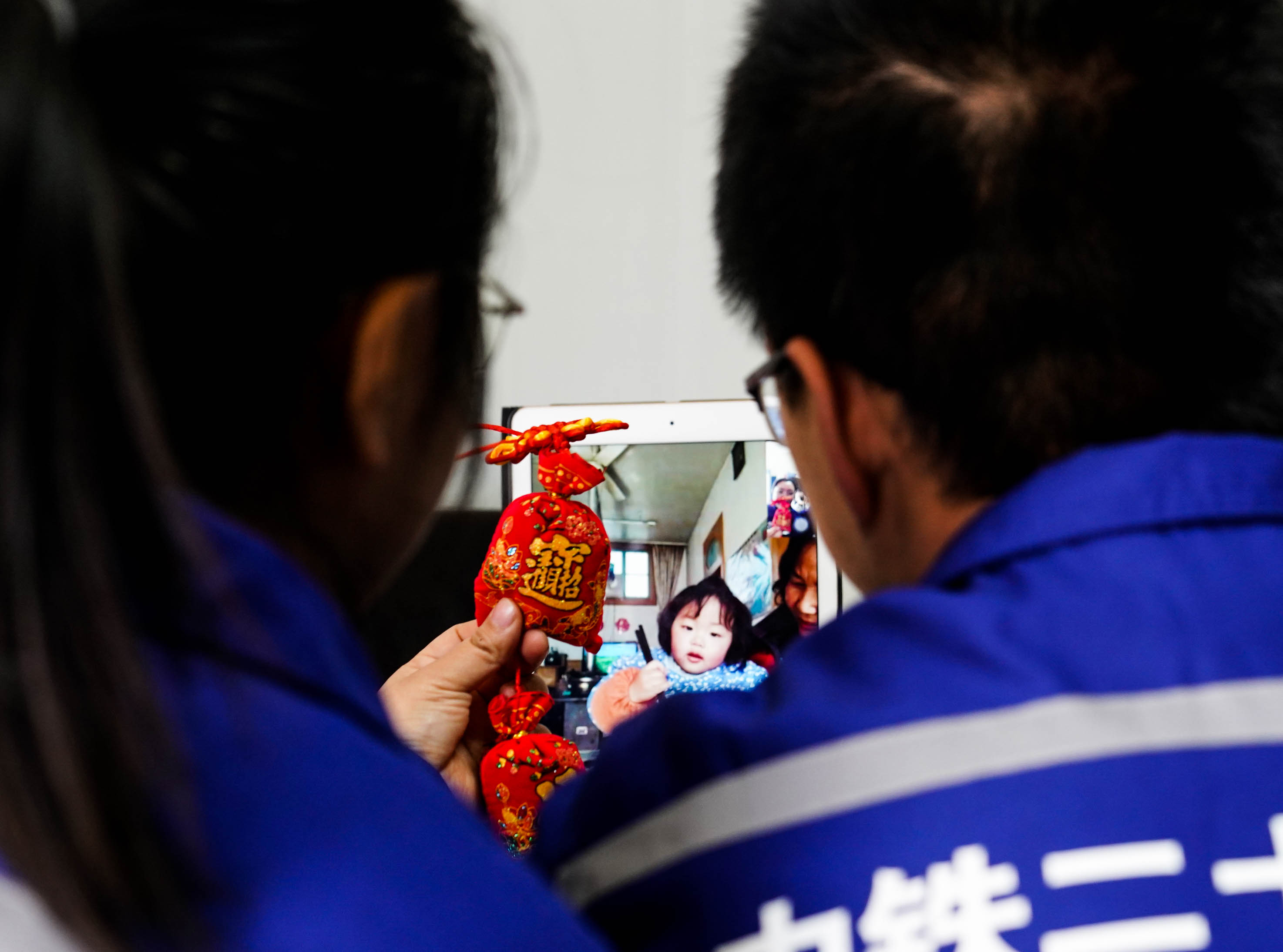中国铁建二十五局集团有限公司峰峰矿区清泉小区项目部工作人员纪甜和常旭东是一对夫妻。今年春节他们不准备回老家了。这几天晚上,只要下班时间比较早,他们就会和远在陕西的家人视频聊天。不到两岁的女儿被外婆抱在怀里,在手机另一端甜甜地喊着“爸爸妈妈”。