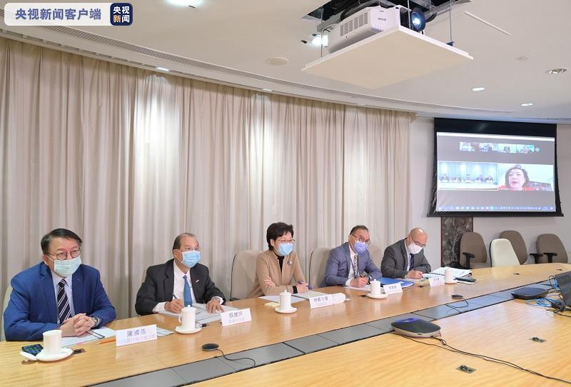 香港特区行政长官林郑月娥继8日与港区全国人大代表会面后,9日又与90位港区全国政协委员以视频会议形式会面,在他们赴北京出席全国两会前就香港与内地的发展等议题交换意见。(总台记者 朱丹 刘志敏)