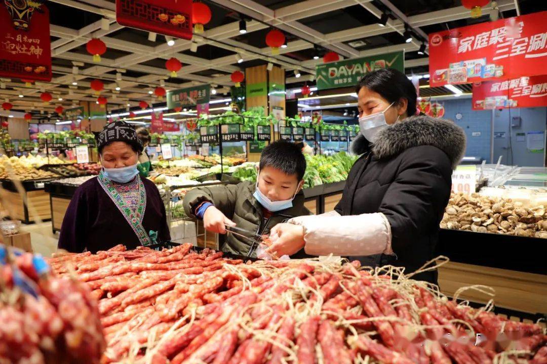 临近春节,何培峰一家在超市内精心挑选了红皮花生、腊肠、春联等年货,为度过一个好年,全家做足了准备。
