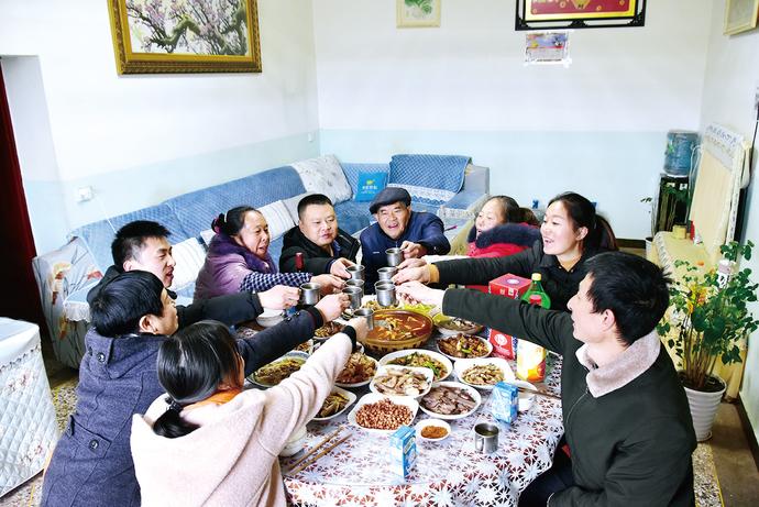 团年饭中亲情越吃越浓、干劲越讲越足,邓太春的儿子儿媳举起酒杯,向全家人喊话:“等来年春节,我们要请更多亲友,再来我家过个热闹年!”