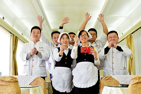 然而辞旧迎新依旧叫人期待。餐车6名工作人员,有老有少,早已亲如一家。厨师长杨宏伟写好了年夜饭菜单,“12道菜,道道硬!”服务员胡楠楠盘算起布置工作,“贴上窗花,挂上灯笼,年味儿一下就足了”。届时,餐车一家子约上列车上的一大家子一起,热热闹闹过个年。