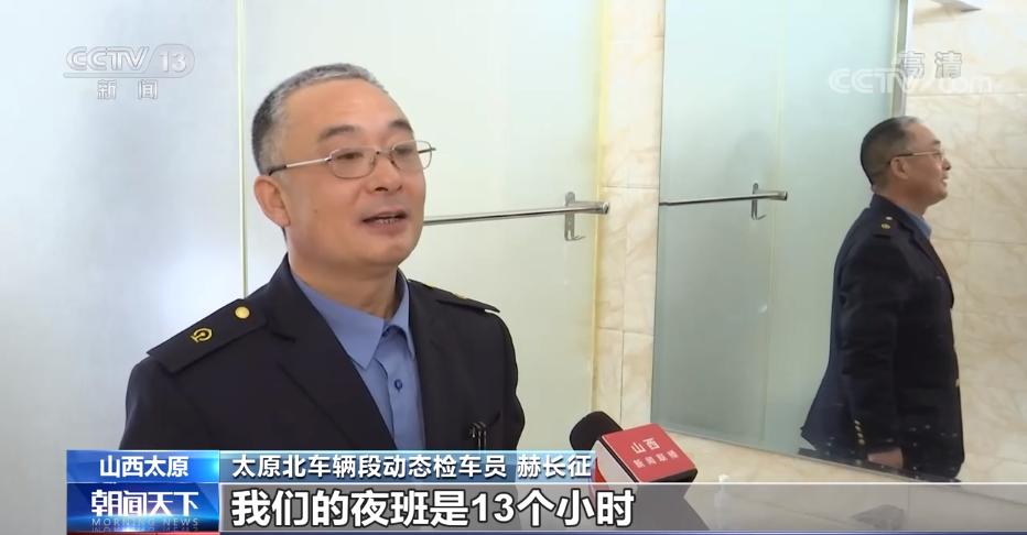 太原北车辆段动态检车员 赫长征:看着这些列车,他们拉着煤拉着货,都是我检查过的。他们安全正点的抵达终点,我心里很高兴也很自豪,同时也很有成就感。