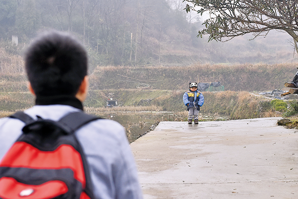 我和同事跟在石欣身后,拐过一道路口,看见不远处有个小小的身影,走在前面的石欣用方言喊了一声,“家鸿”。正是他在外打工最思念的儿子!本能让我马上握紧了手中的相机。