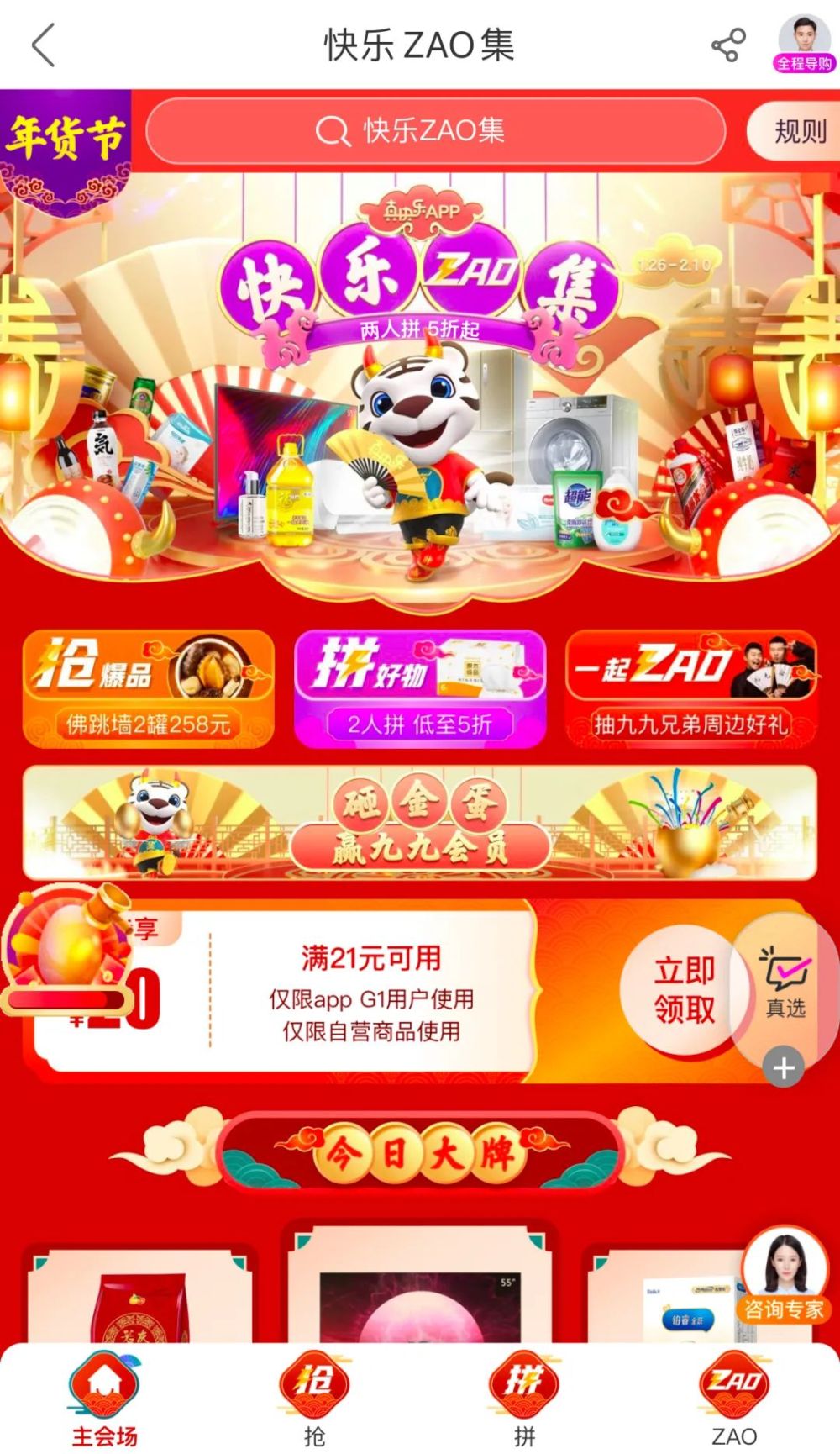据悉,“真快乐”APP就随着产业结构的日益拓展,供应链体系的逐步完善,具有丰富种类、真选品质、大品牌汇集等显著特点,并通过“抢-拼-ZAO”一系列娱乐化玩法,结合年货节的氛围,将“真选好物”推向高潮。