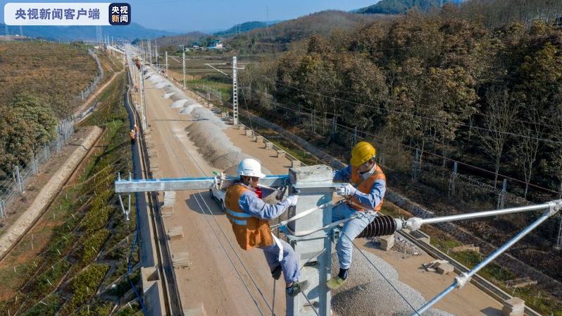 春节期间,铺轨、四电、站房等专业不停工,1.7万名建设者分布在数百个工点昼夜施工,持续奋战,争分夺秒推进工程建设。