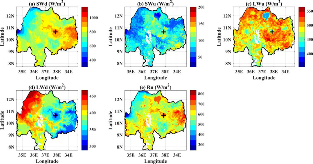 这是利用站点气象数据和卫星遥感手段得到的青尼罗河上游地表辐射四分量及净辐射空间分布图 (中科院青藏高原所供图)