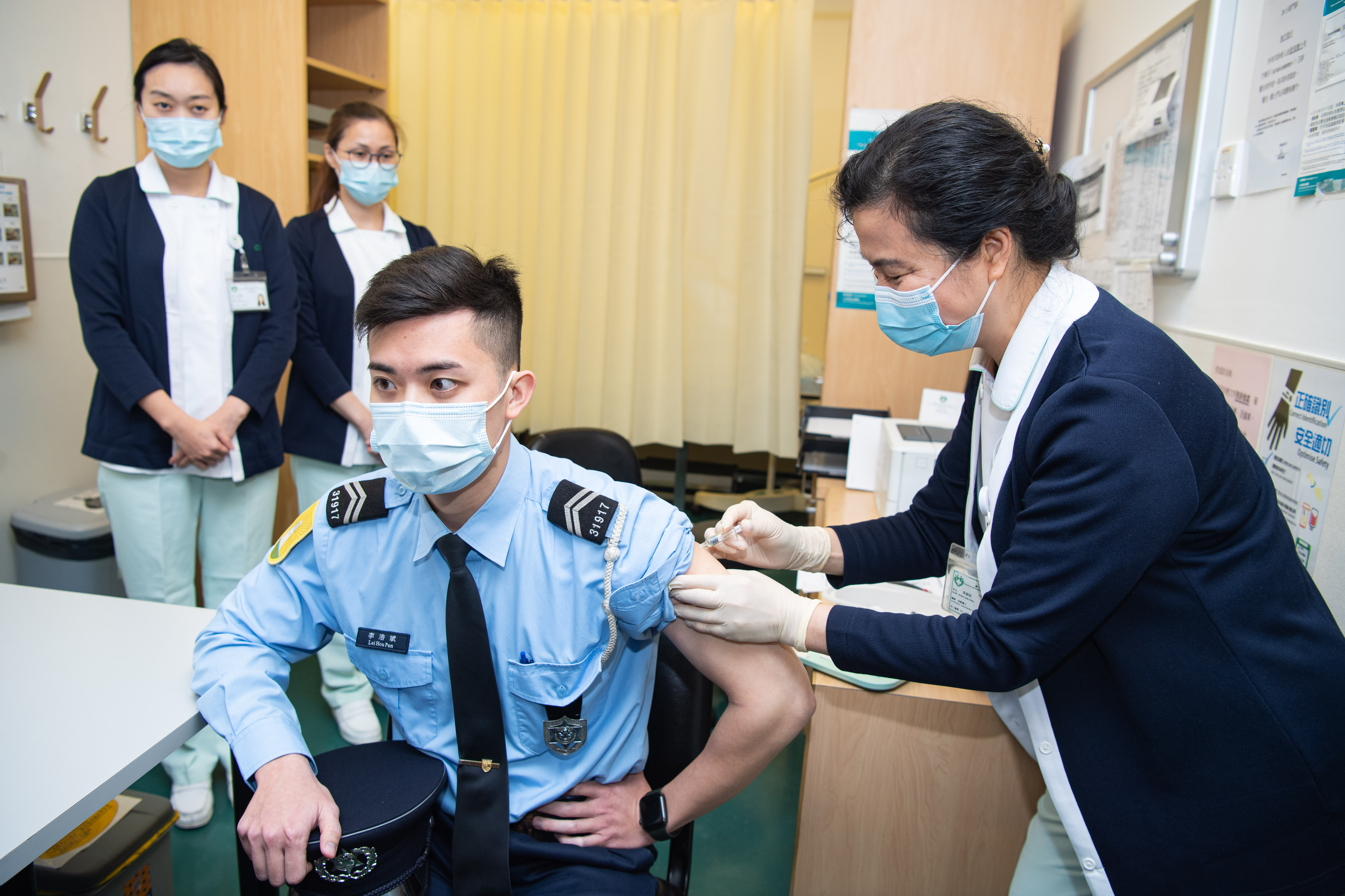 2月9日,一名纪律部队人员接种新冠疫苗。新华社记者张金加摄