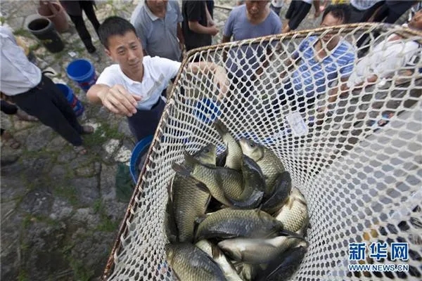 贵州省毕节市黔西县洪水镇解放村村民在领取幼鱼。新华社发(史开心 摄)