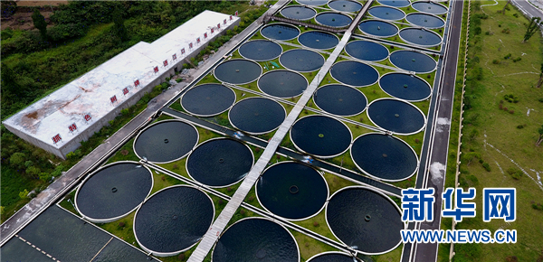 航拍的贵州省江口县凯德街道小龙塘的鲟鱼养殖基地。新华网 卢志佳 摄