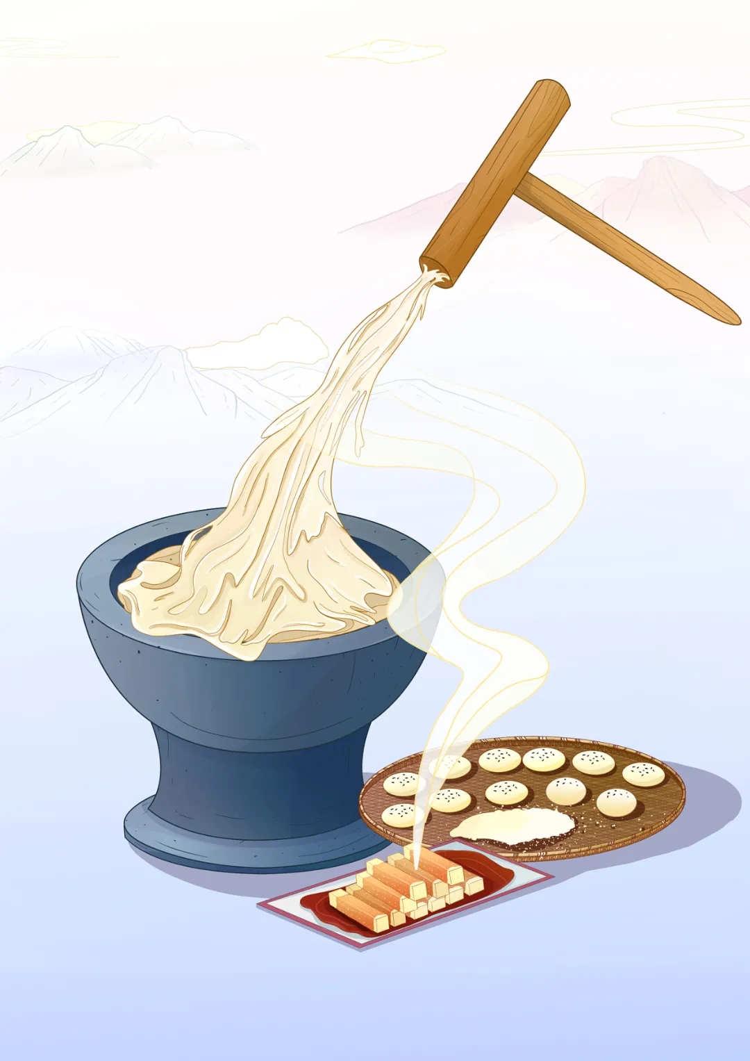 在年糕上反复敲打
