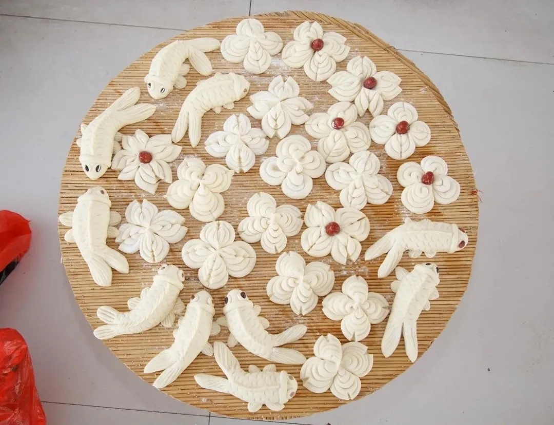 有象征来年富裕的“连年有余”馒头
