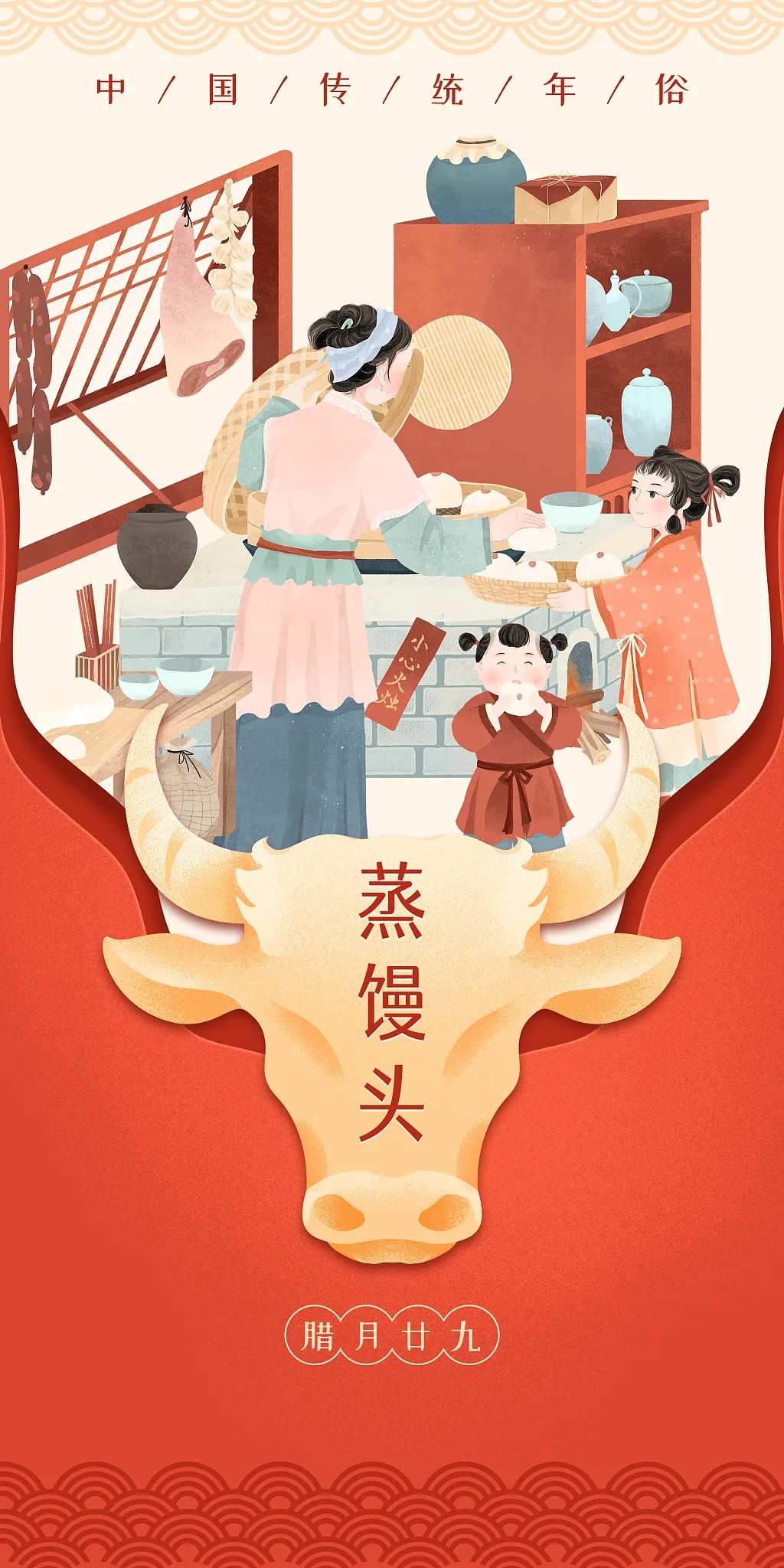 今天的年俗是蒸馒头