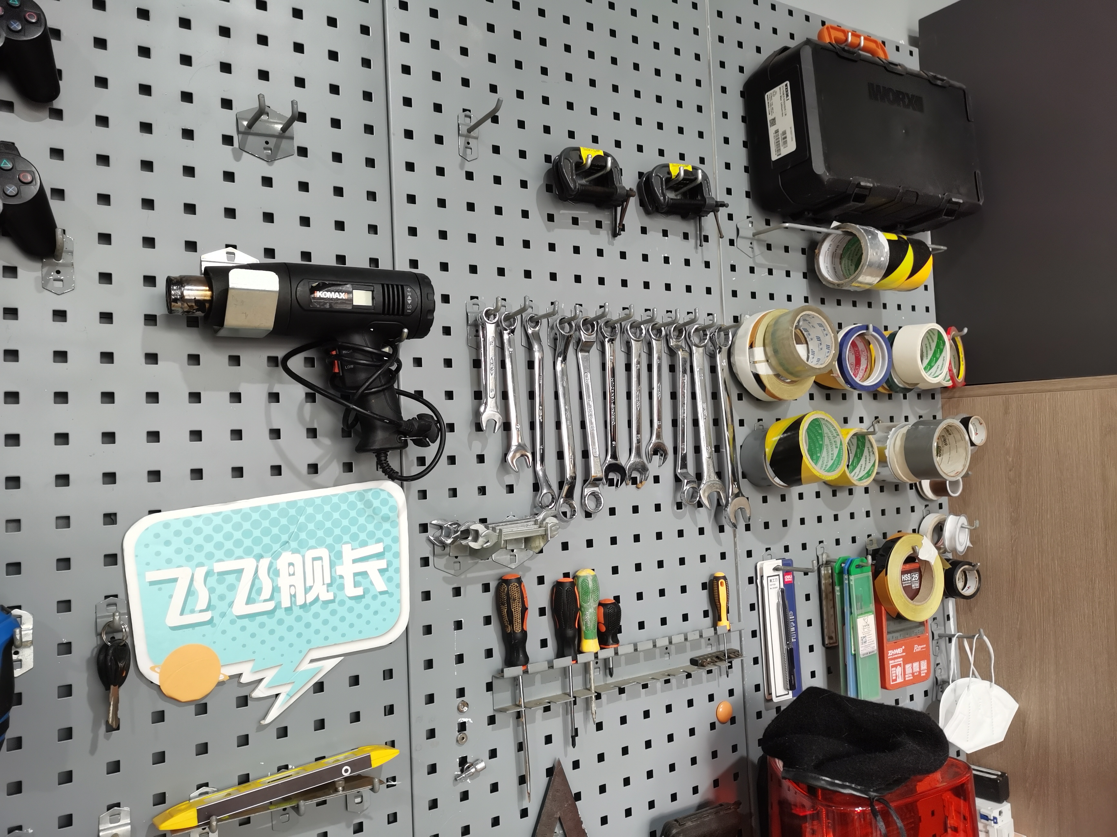 王飞的实验室在安徽省合肥市郊区的一栋大房子里,走进这栋房子,就仿佛进入了一个小型加工厂。电钻机、切割机、3D打印机,各种机械工具一应俱全,光是不同型号的螺丝钉就有几十种。