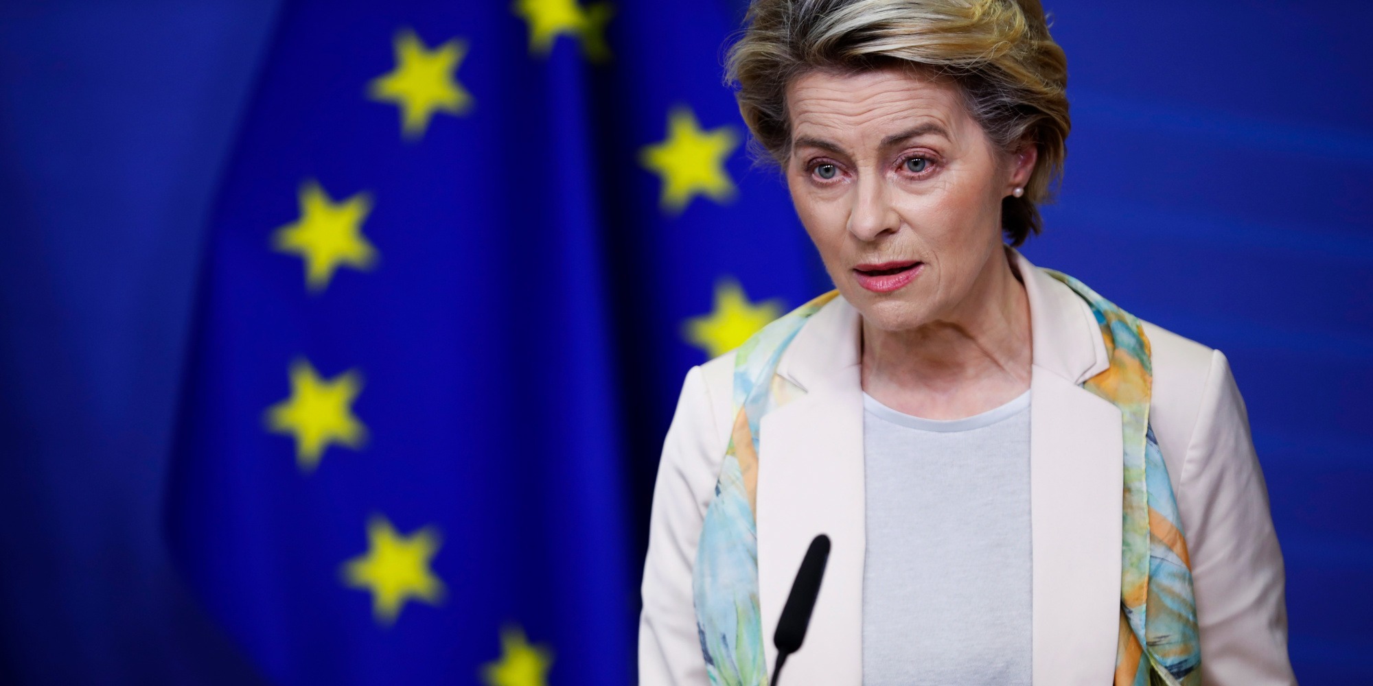 当地时间2月10日,欧盟委员会主席冯德莱恩在欧洲议会召开的全体会议上,就欧盟新冠疫苗接种战略以及欧盟各国疫苗接种进展发表演讲。