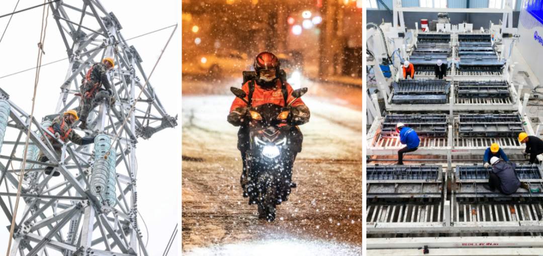 电力工人、外卖小哥、铁路施工人员坚守岗位