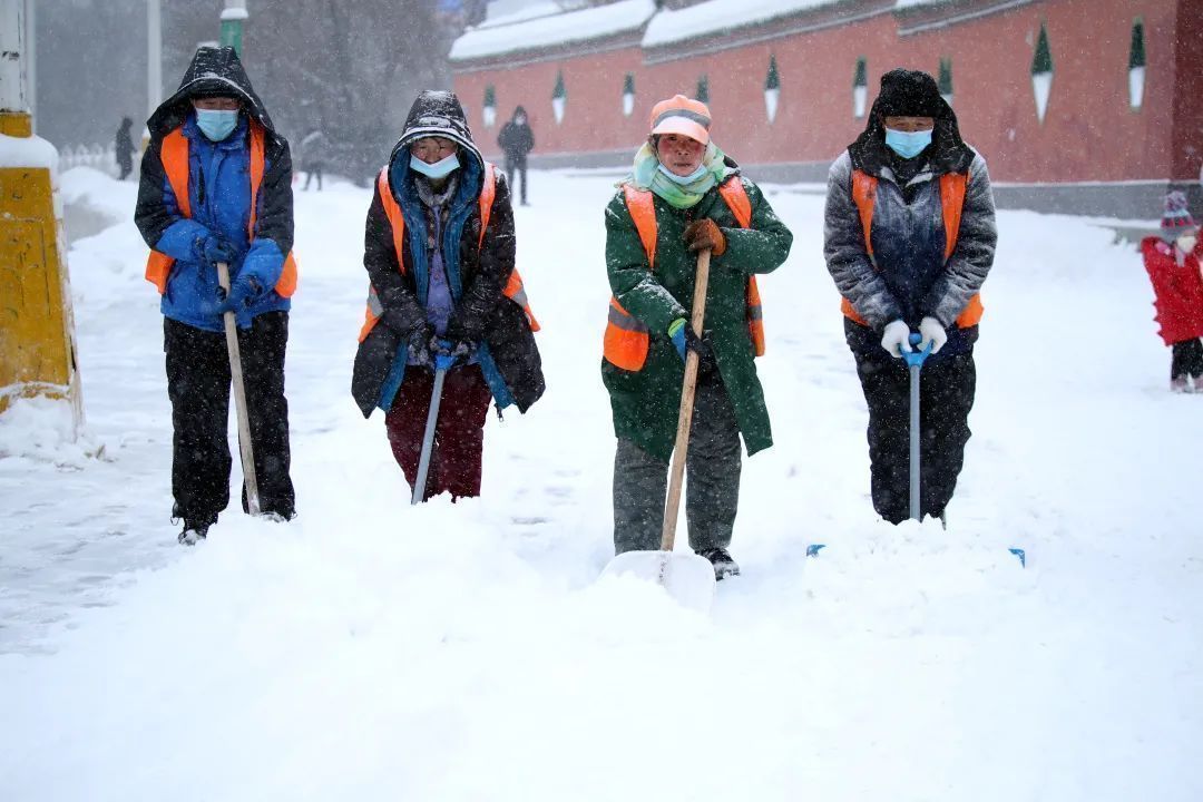 环卫工在清理积雪