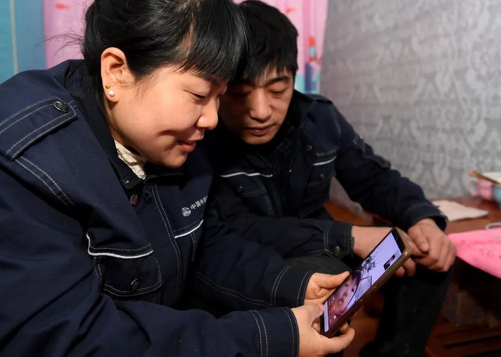 决定就地过年后,务工夫妻在宿舍与家人视频