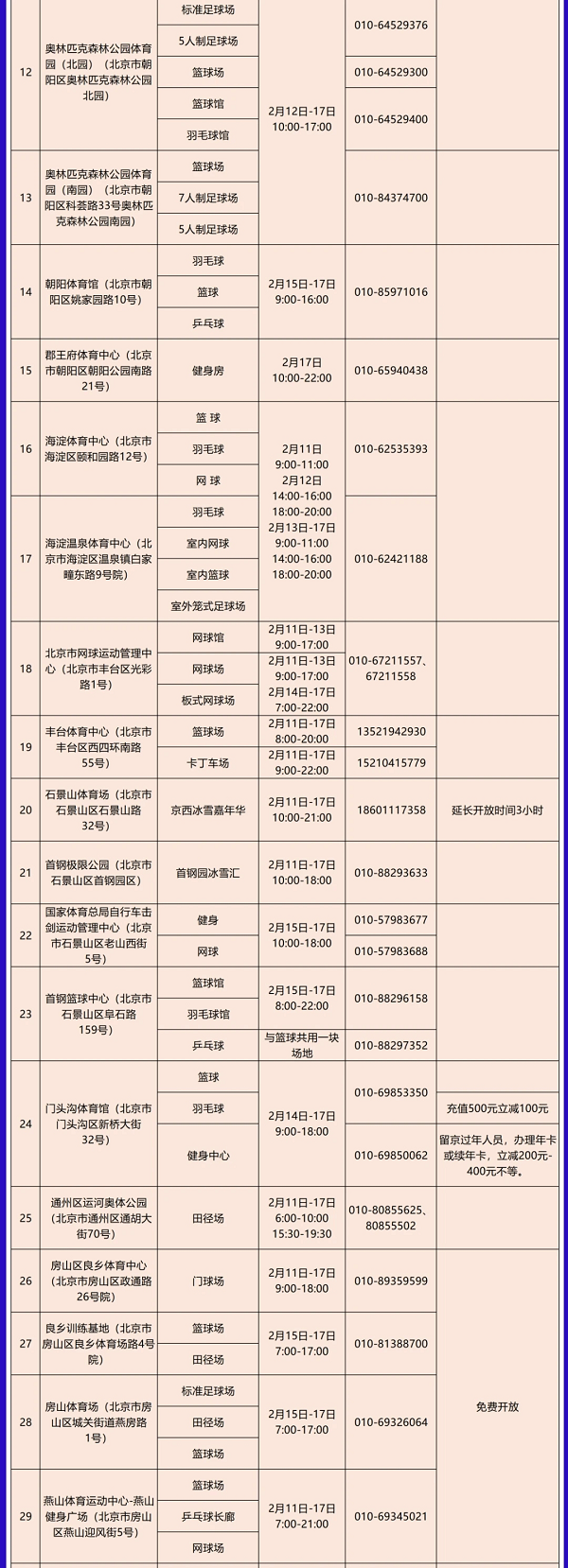 春节期间,北京市40家公共体育场馆将向市民开放,其中部分场馆设有优惠或免费时段。