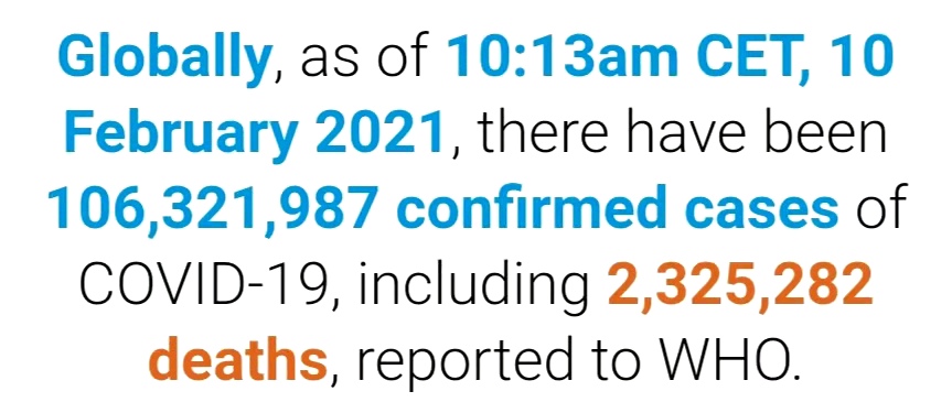 世卫组织:全球新冠肺炎确诊病例超过1亿632万例