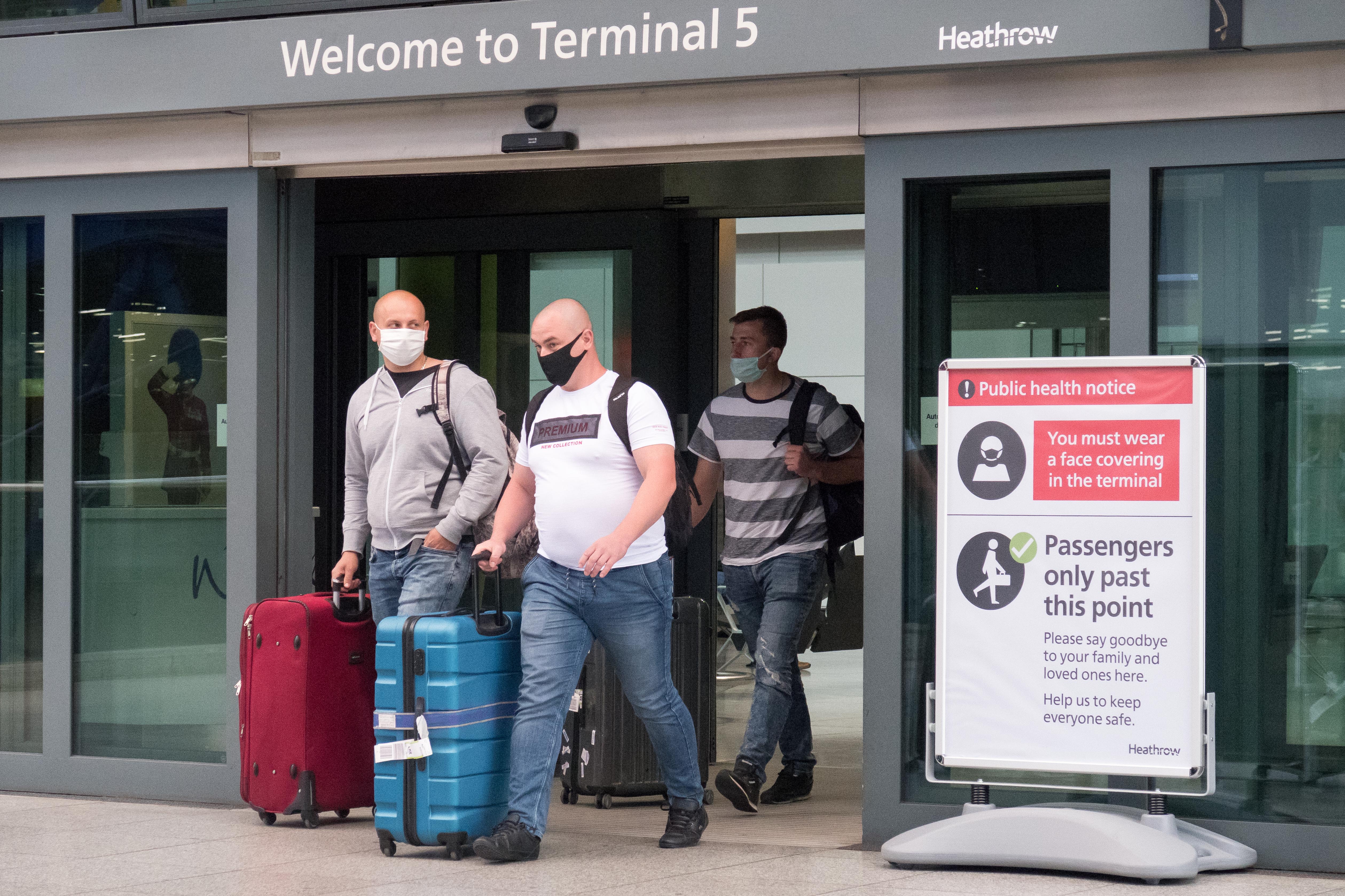 图为2020年6月8日,乘客离开英国伦敦希思罗机场第五航站楼。(新华社发,蒂姆·爱尔兰摄)