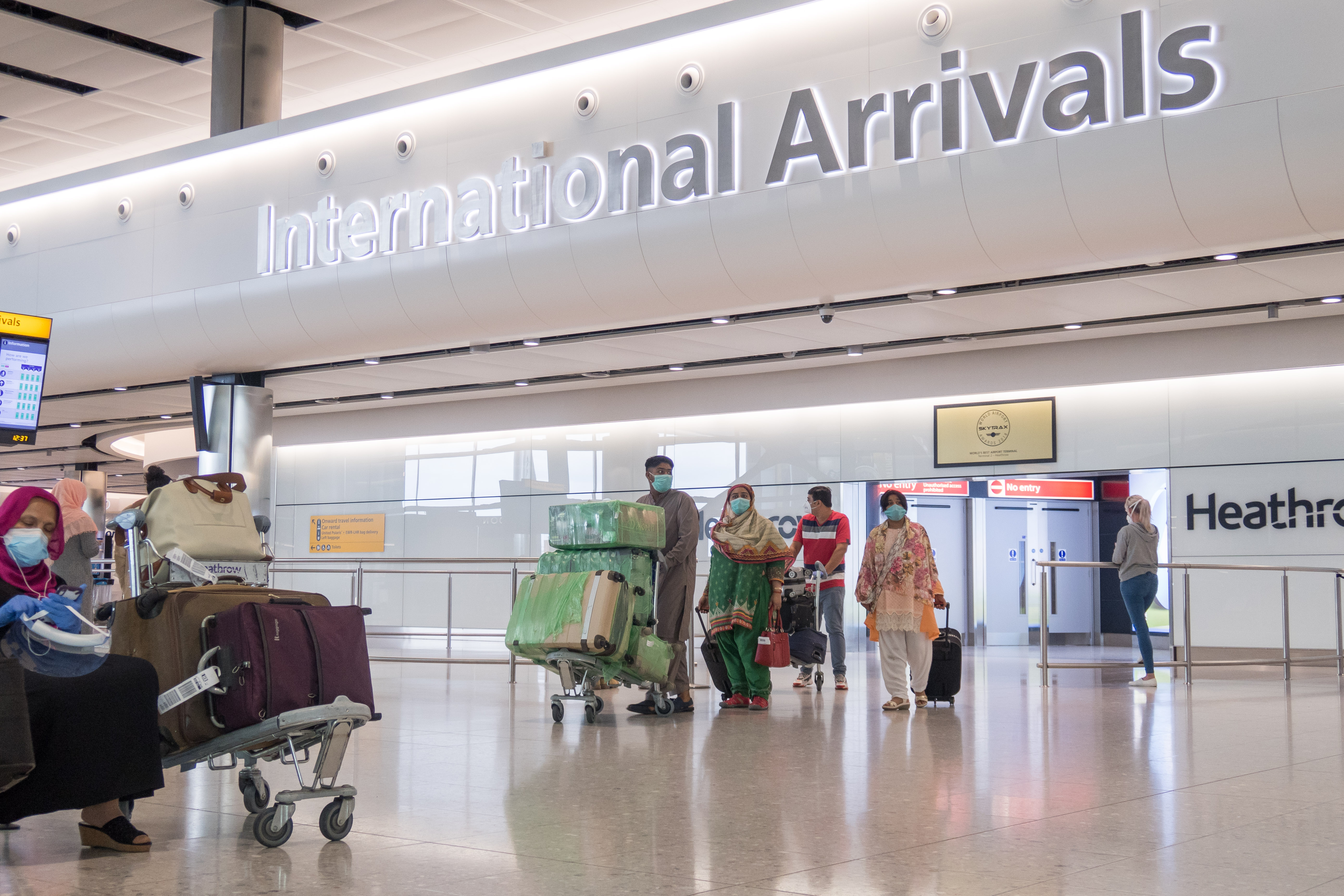 图为2020年6月8日,乘客抵达英国伦敦希思罗机场第二航站楼。(新华社发,蒂姆·爱尔兰摄)