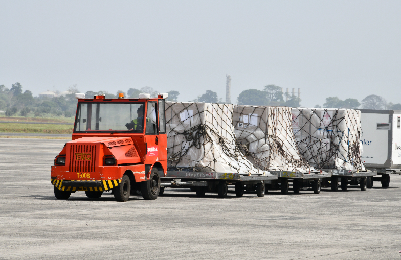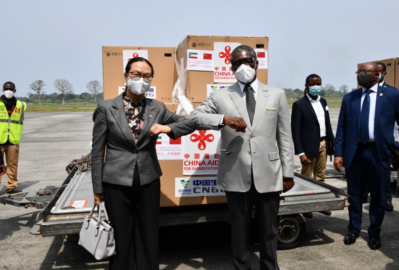 当地时间2月10日9时30分左右,中国政府援助赤道几内亚的新冠疫苗运抵该国首都马拉博,赤几副总统曼格和中国驻赤几大使亓玫到机场迎接,并在机场举行了疫苗交接仪式。