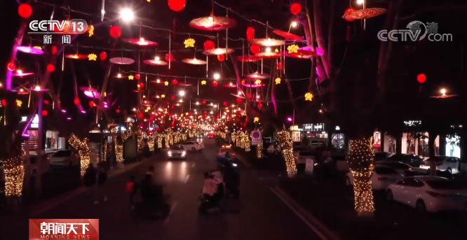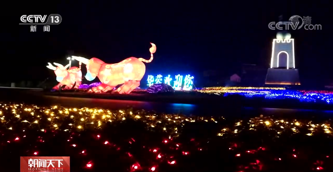 为了迎接春节的到来,各地大街小巷张灯结彩,喜气洋洋迎新春。 人们在灯光秀的流光溢彩中感受到浓浓的年味。