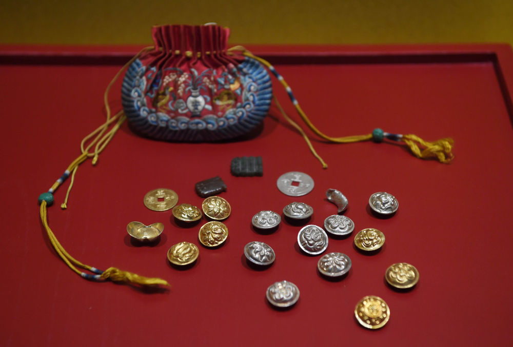 这是刺绣荷包里装的“压岁钱”(故宫博物院收藏)。 新华社记者 金良快 摄