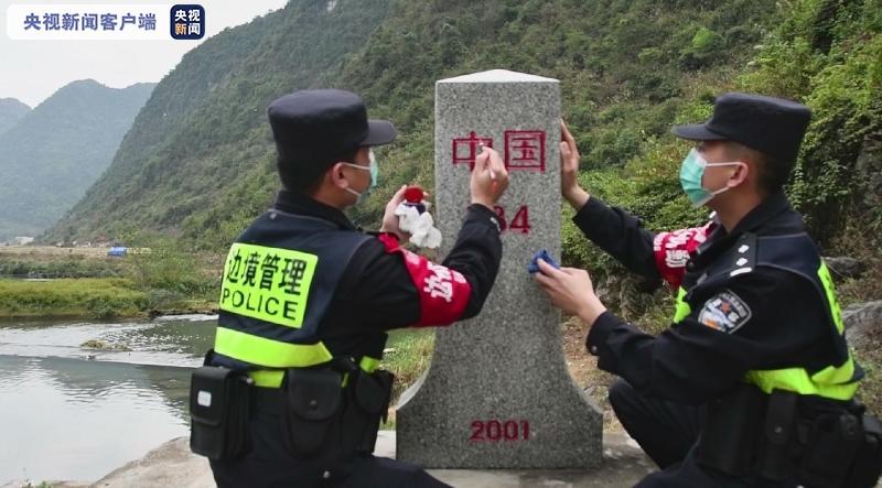 今天除夕,广西出入境边防检查总站的很多民警依然坚守在执勤一线,除了每天的巡逻任务,他们还对辖区的界碑进行了擦拭和描红,并向祖国和人民许下新春祝福。