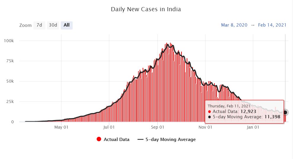 当地时间11日8时(北京时间10时30分),据印度卫生部发布消息,印度新冠肺炎确诊病例达10871294例,其中死亡病例155360例,治愈出院10573372例,活跃病例142562例。