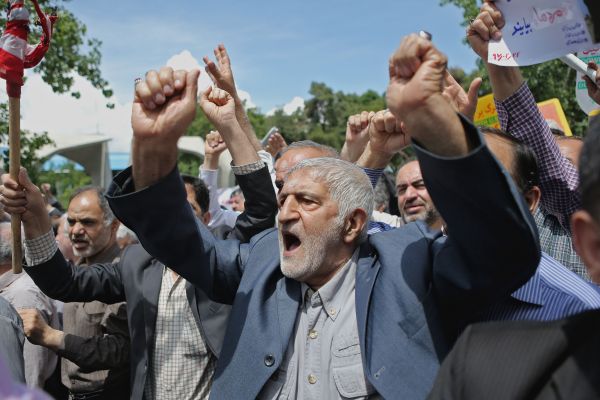 资料图:2018年5月11日,在伊朗首都德黑兰,民众抗议美国退出伊核协议。(新华社)