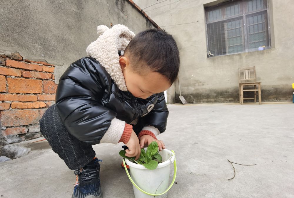 (小宇自己种的白菜,说是要“给爹爹奶奶”吃。新华社记者张紫赟摄)
