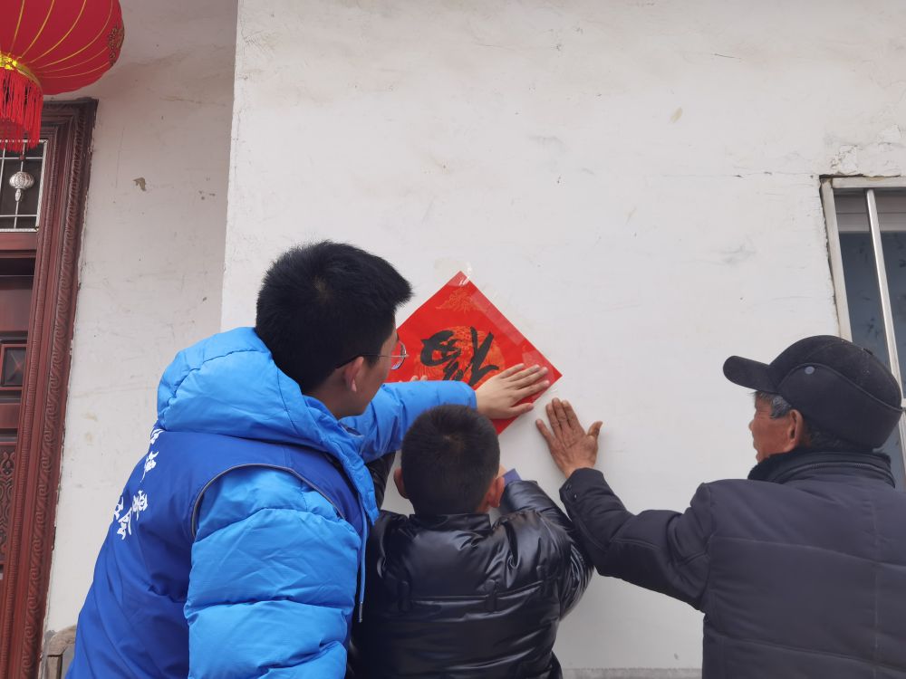 (小傲和志愿者一起帮爷爷贴“福”字。新华社记者张紫赟摄)