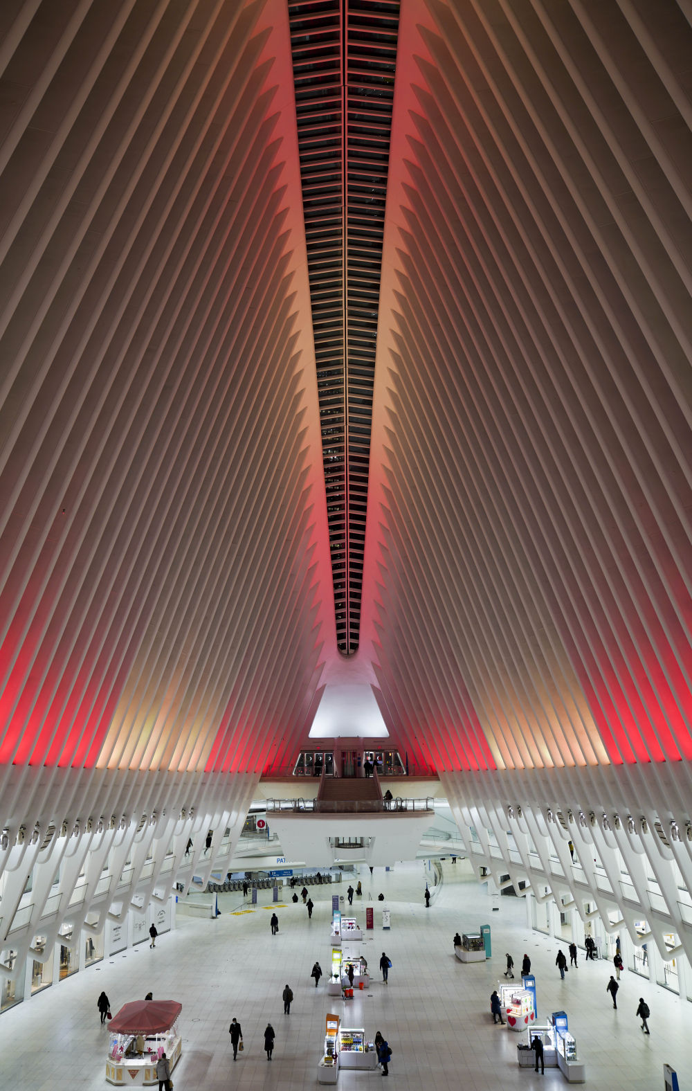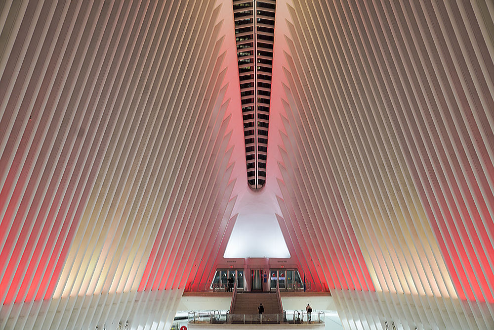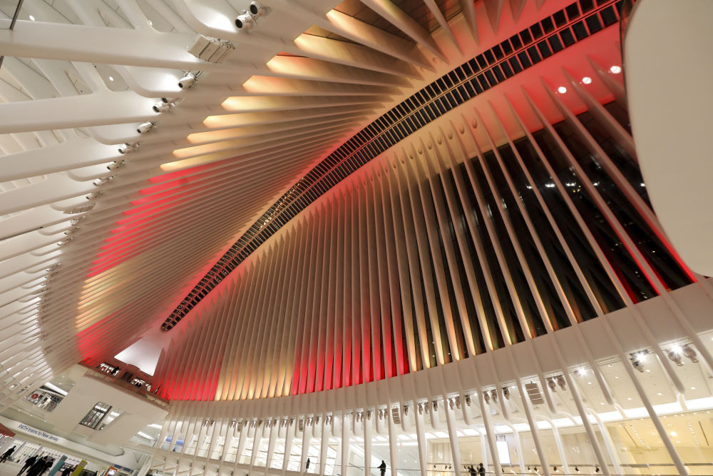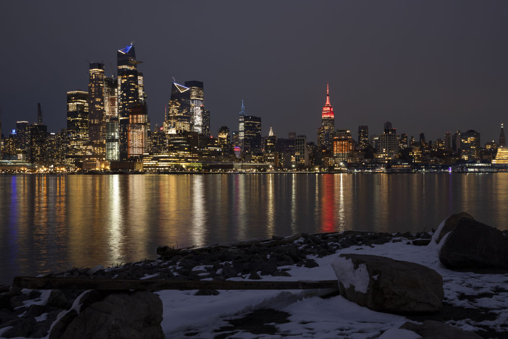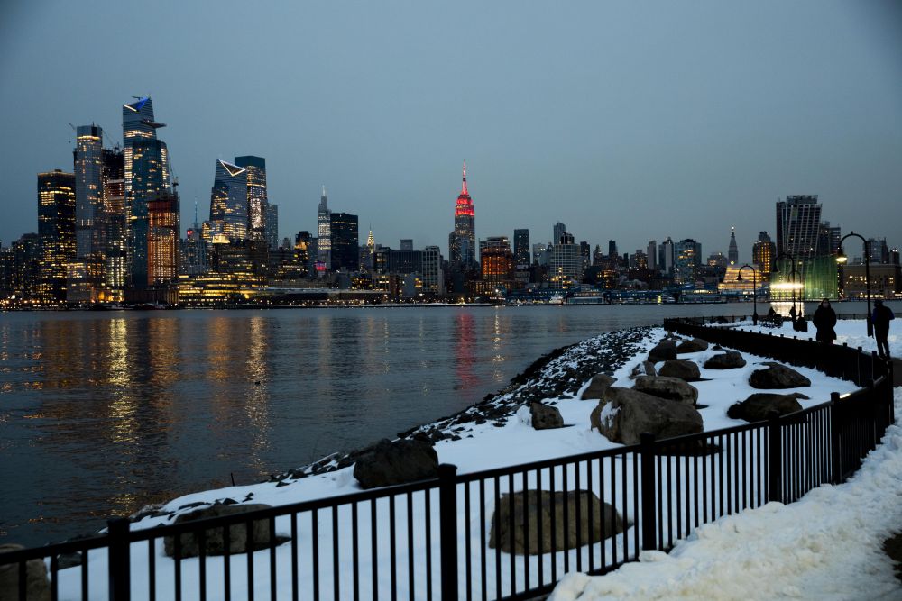 ↑2月10日,美国纽约世贸中心一号楼亮起红色的灯光。