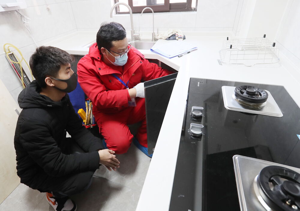 春节前,王辉辉在居民家中检修燃气(合肥昆仑燃气公司供图)