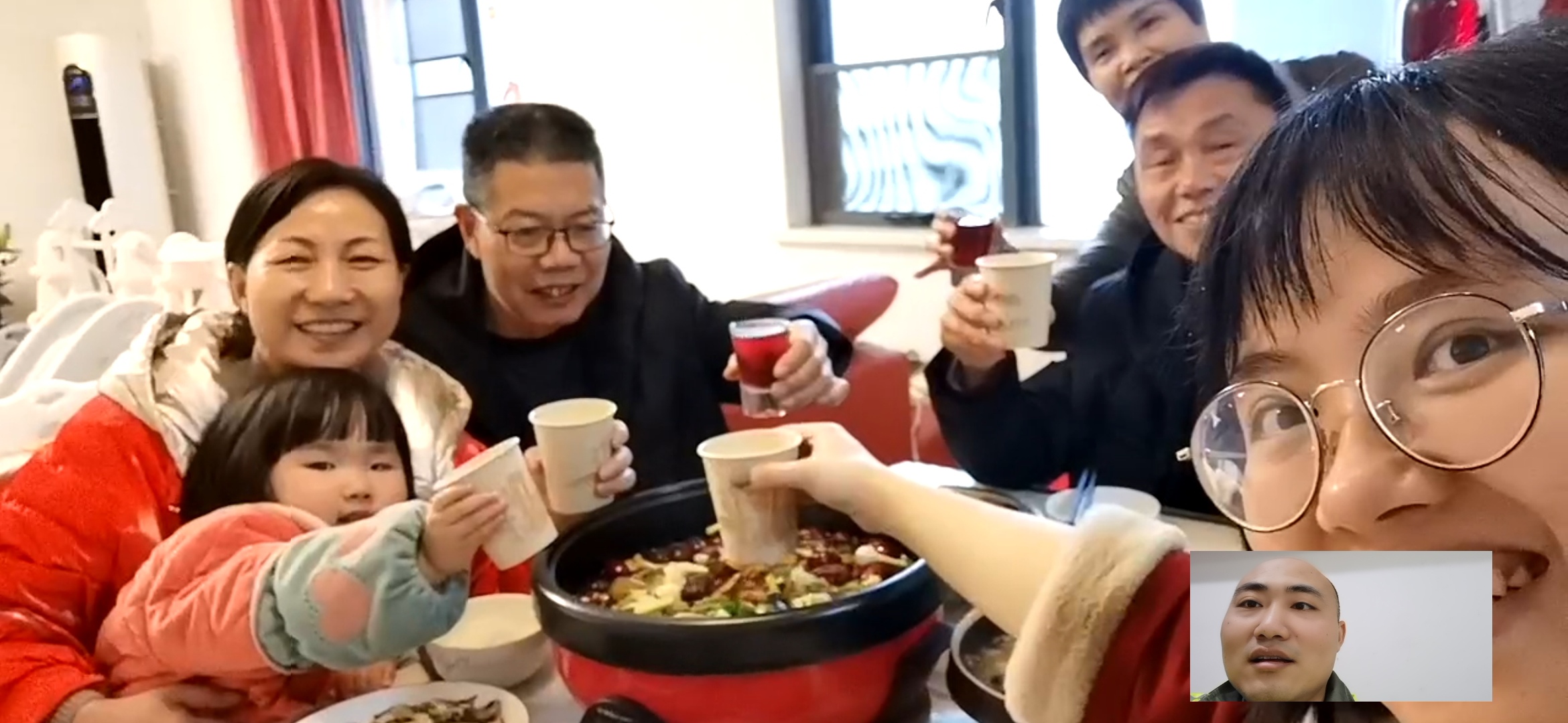 大年三十,由于工作、疫情防控等原因,各行各业的很多人无法回家团聚,只能和家人通过视频、电话“云团年”。父母在那头张罗了好饭菜,儿女在这边敬上酒一杯。尽管天南海北,有你,有我,就是团圆。