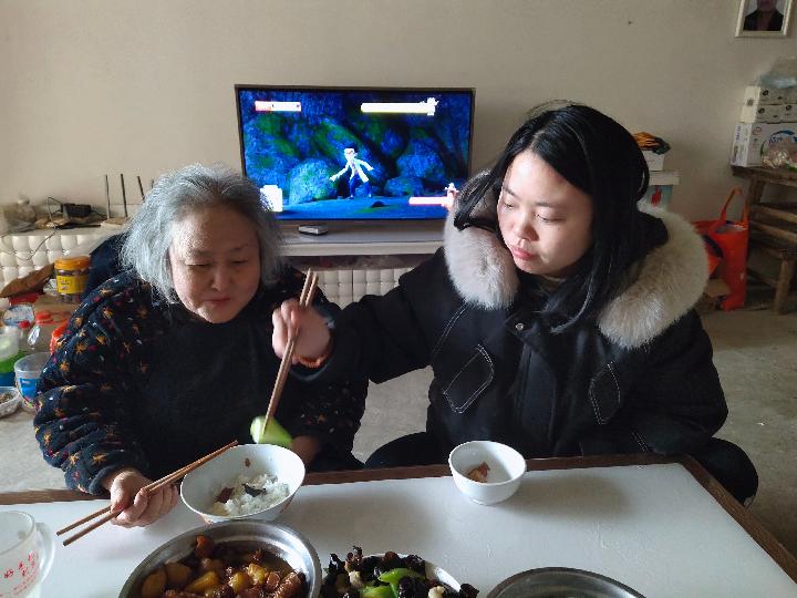 打扫房间、给奶奶和幺爷爷穿上新衣服,放上喜庆的音乐,家里有了简单而温馨的过年氛围。社区也送来了米面油等慰问品,虽然生活不容易,但肖燕很乐观。“一家人能在一起过节就好!”她笑着说。
