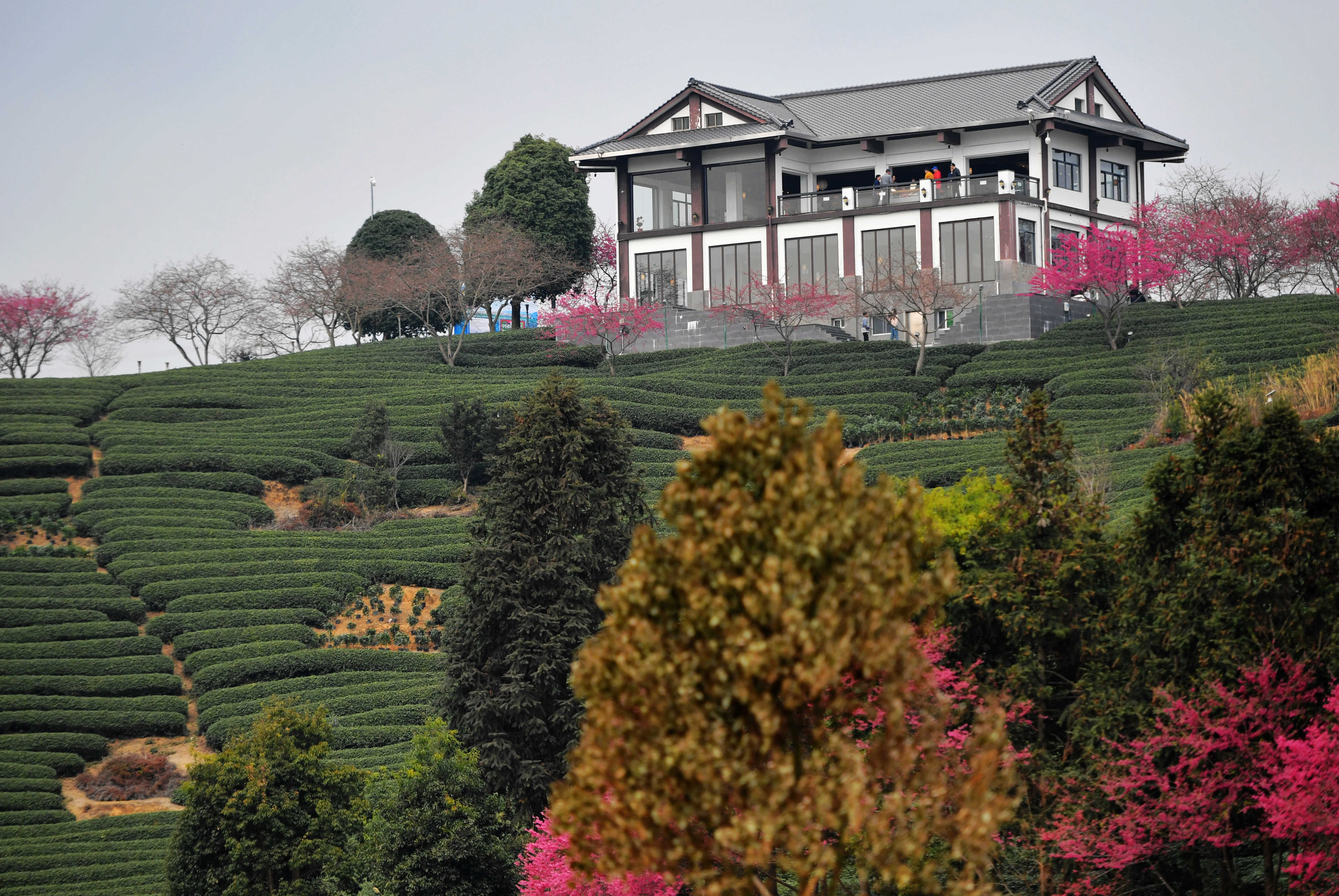 新华社福州2月11日电(记者 许雪毅)每年春节前后,是台品樱花茶园董事长谢东庆最赏心悦目的时候:千亩绿色茶园里,8000多株樱花连片绽放,包括台胞在内的赏樱人纷纷慕名而来。