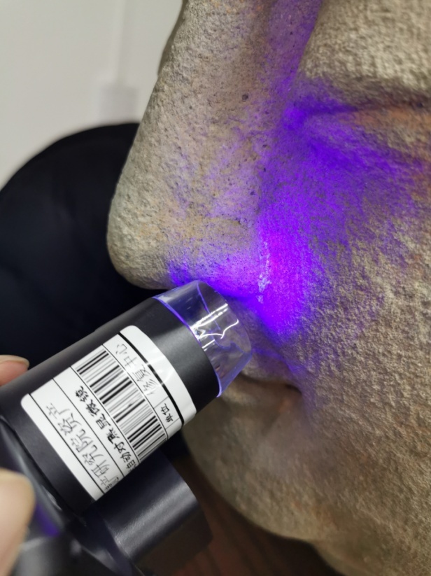文物测试分析中发现佛首鼻翼及鼻梁处荧光现象,推断存在修复痕迹。国家文物局供图