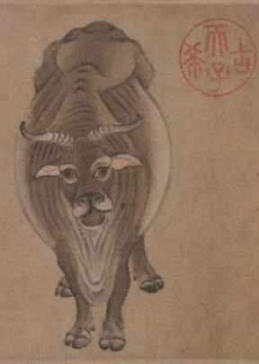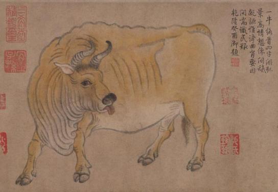 这幅唐代韩滉所作的《五牛图》,图画五牛,形象不一,姿态各异,或行或立,或俯首,或昂头,动态十足。每头牛皆目光炯炯,作者通过对眼神的着力刻画,将牛既温顺又倔强的性格表现得极为传神。