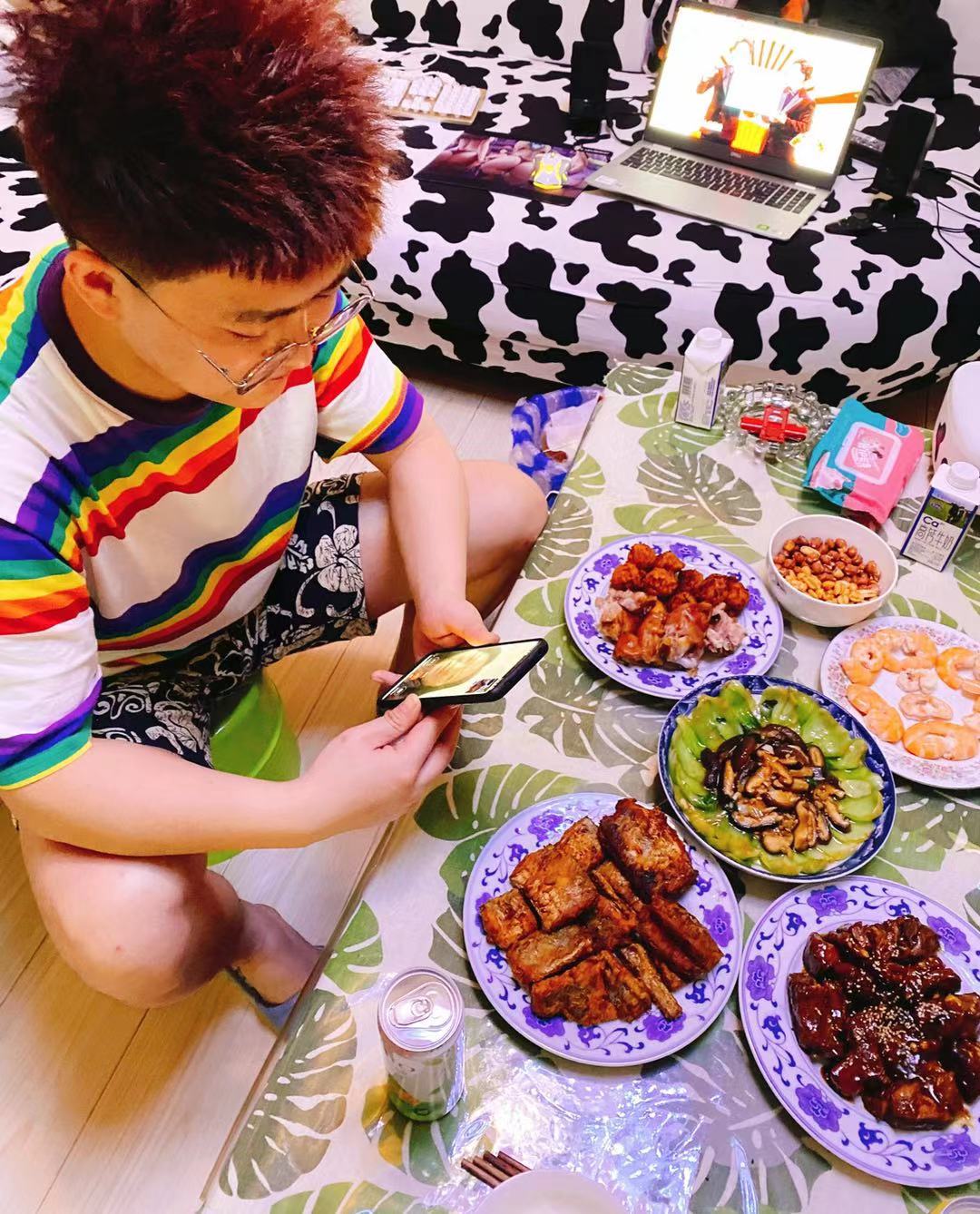排骨、带鱼、虾仁、猪蹄……王伟把自己的年夜饭也亮给父母“点评”。为了这顿饭,他和女朋友郝琳琳忙了小半天。郝琳琳的老家在内蒙古,在哈尔滨工作,两个年轻人都是第一次在异乡过年,他们的婚期就定在2021年。