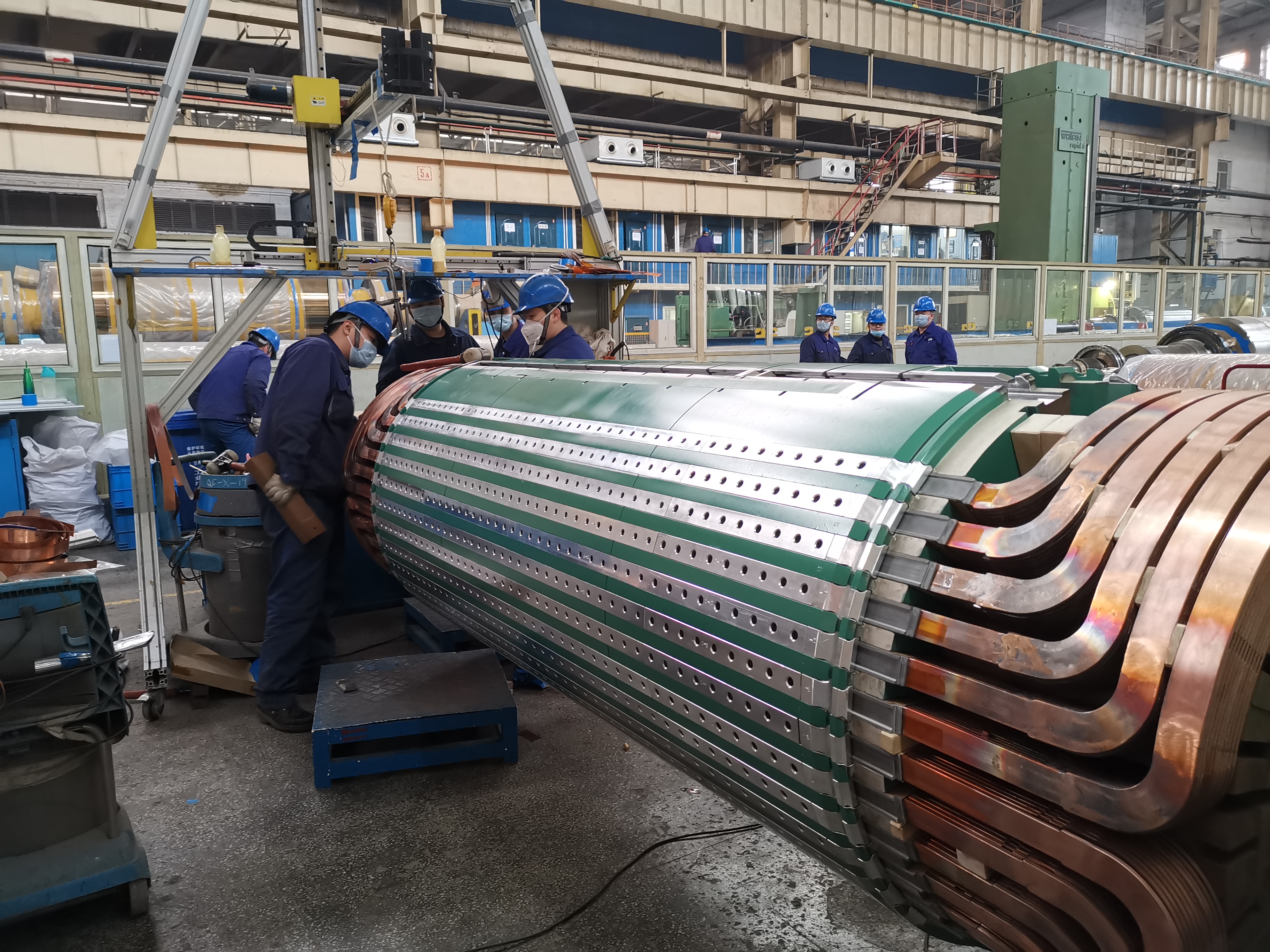 2月1日,哈电集团哈尔滨电机厂生产车间。(新华社记者强勇摄)