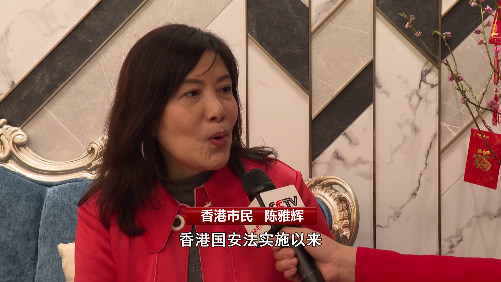 香港市民 陈雅辉:香港国安法实施以来,我们香港现在正式回归正轨,所有的市民都能安心过正常的生活,我们也很幸运,一家三代今年可以 一家开开心心在这里吃个团年饭。